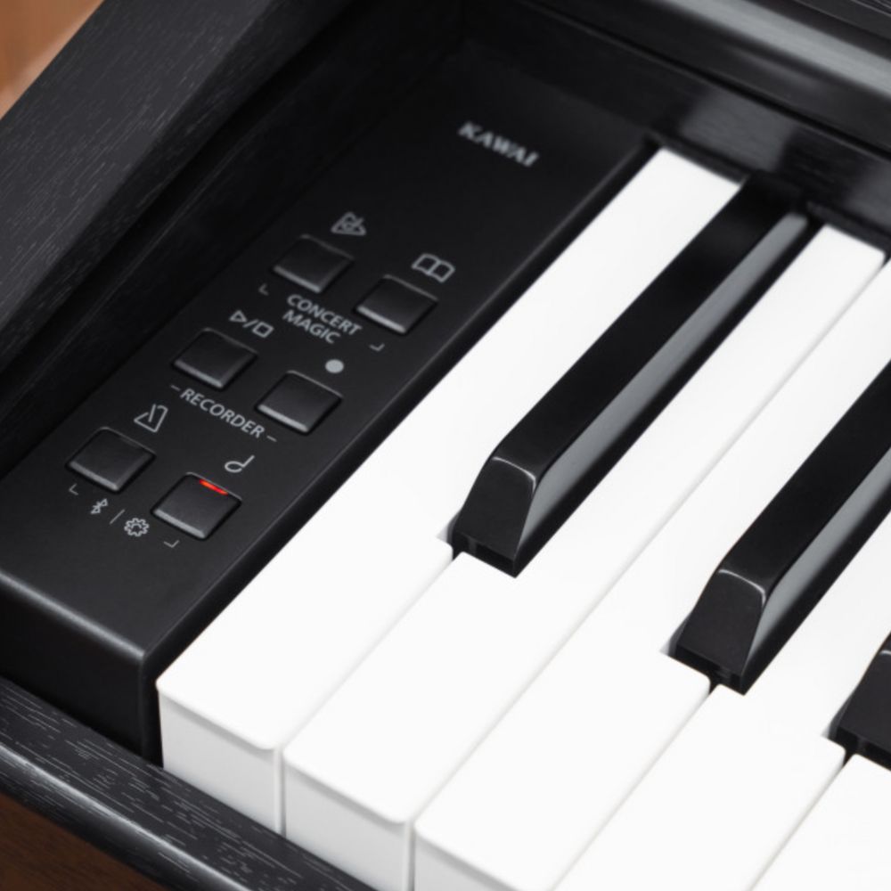 We’ve spent some quality time with this one at Bonners Music and can honestly say it’s a brilliant all-rounder for advancing players or anyone moving up from starter keyboards. It doesn’t feel cheap, either. The keys are nicely weighted and have a proper three-sensor system, so you get the control and accuracy you want for more expressive playing. Plus, Kawai’s brought in their clever tech from the fancier CN range to make everything feel that bit more realistic and refined -quieter touches, improved cushioning, and a keyboard that’s heavier down in the bass and lighter at the top, just how an acoustic should be.