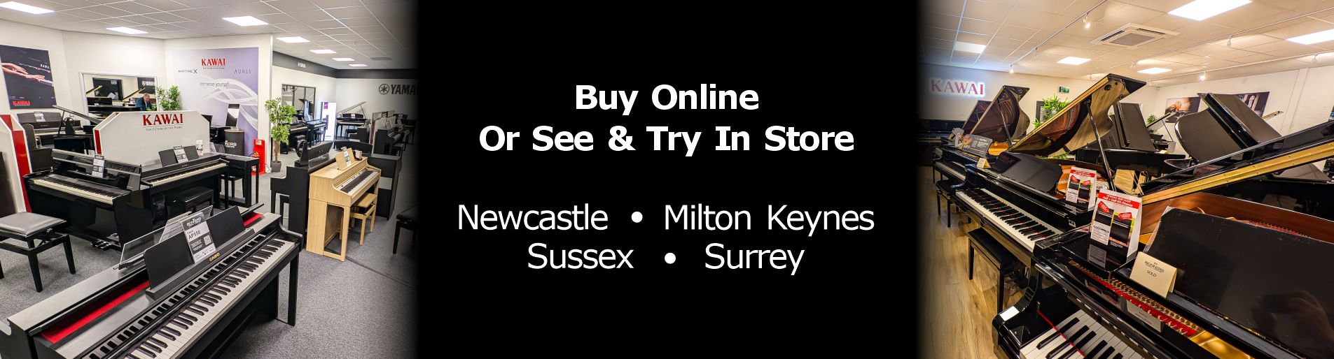 You can either buy the GP310 online or come and try the complete Casio Grand Hybrid piano range in our stores. Our digital piano centres are located in Eastbourne (Sussex Coast), Reigate (Just off JCT 8 M25 motorway in Surrey), Milton Keynes.