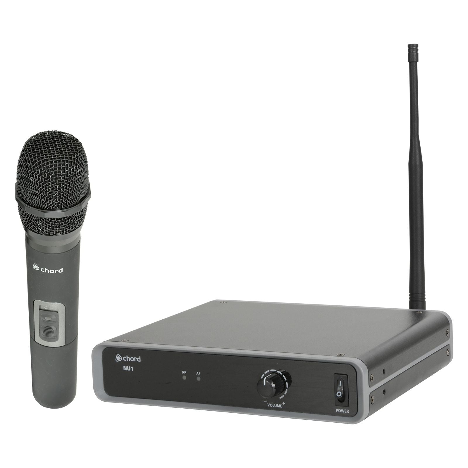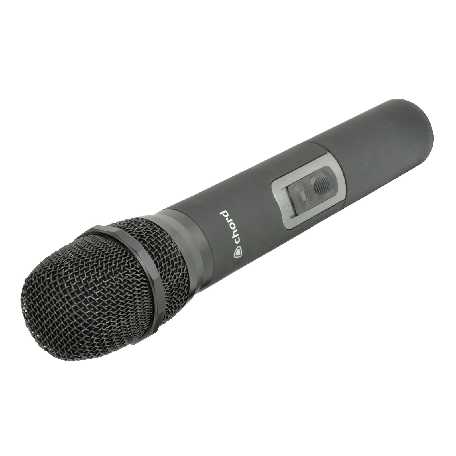 Wireless microphone system with fixed UHF handheld transmitter and half rack-width receiver. The receiver unit is compatible with standard 19" racks using the included rack ears and front mounting ...