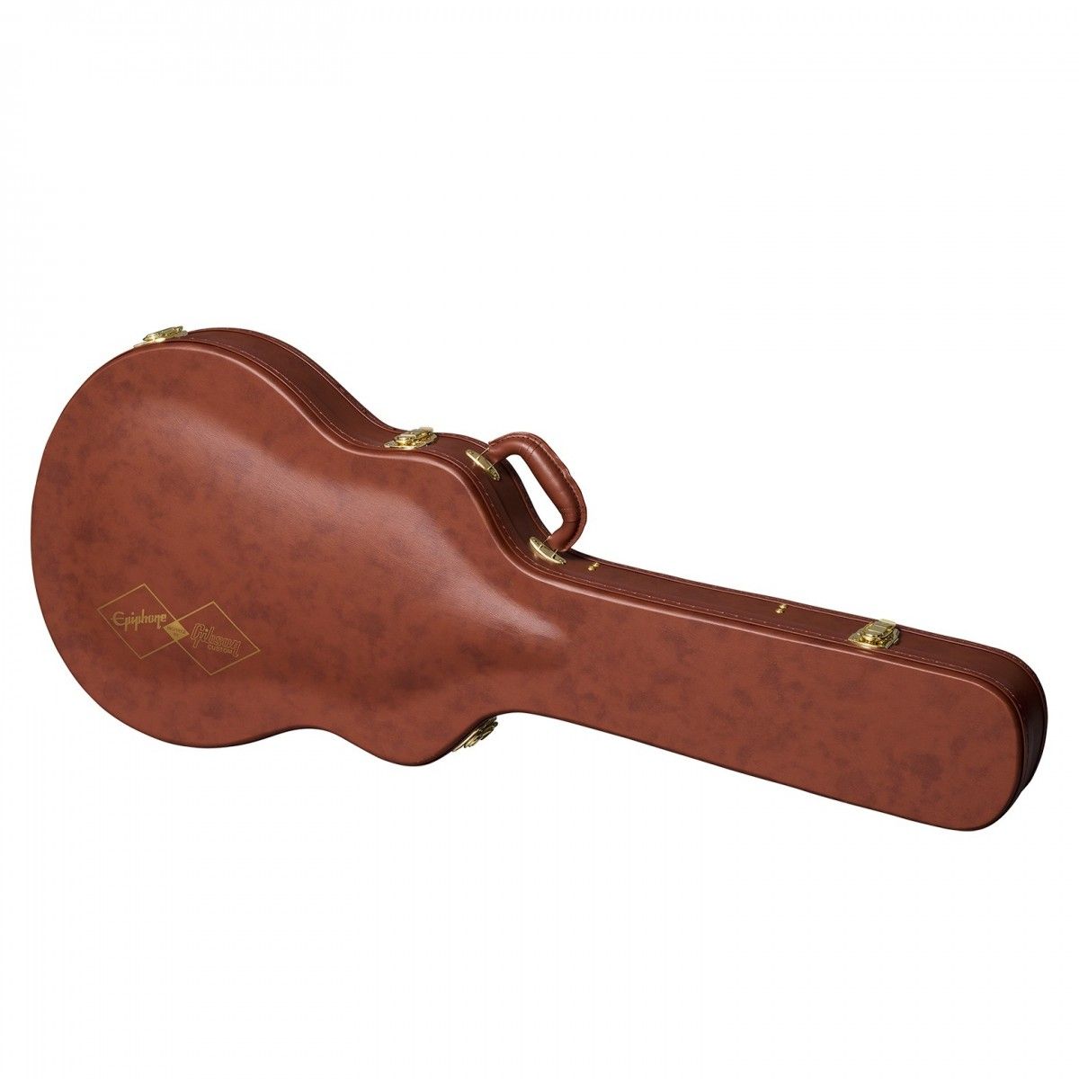 The body features 5-ply layered maple/poplar with a solid maple centre block for enhanced sustain and reduced feedback. Its one-piece mahogany neck sports a comfortable ’50s Rounded Medium C profile, paired with an ebony fretboard inlaid with mother-of-pearl block markers. The Gibson-style “open book” headstock showcases the Split Diamond and Epiphone logo inlays, complemented by gold Grover Rotomatic tuners and the Inspired by Gibson Custom double diamond logo on the back.