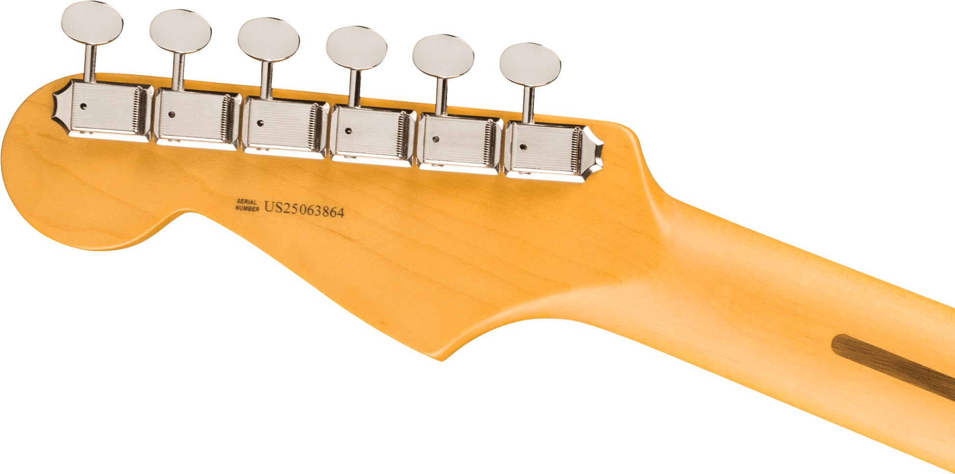 The neck is everything you’d want in a modern Strat — a satin-finished Modern "C" shape that feels sleek and broken-in from day one. It’s got a maple fingerboard with a 9.5" radius and 22 frets, making bends, chords, and runs feel effortless. Black dot inlays give it a bold, clean look, while staggered ClassicGear tuners hold tuning rock solid and add just the right touch of retro cool.