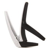 Easily applied and adjusted with one hand, its spring-loaded design is equally at home on acoustic or electric guitars, and can be conveniently parked on the headstock when not in use.