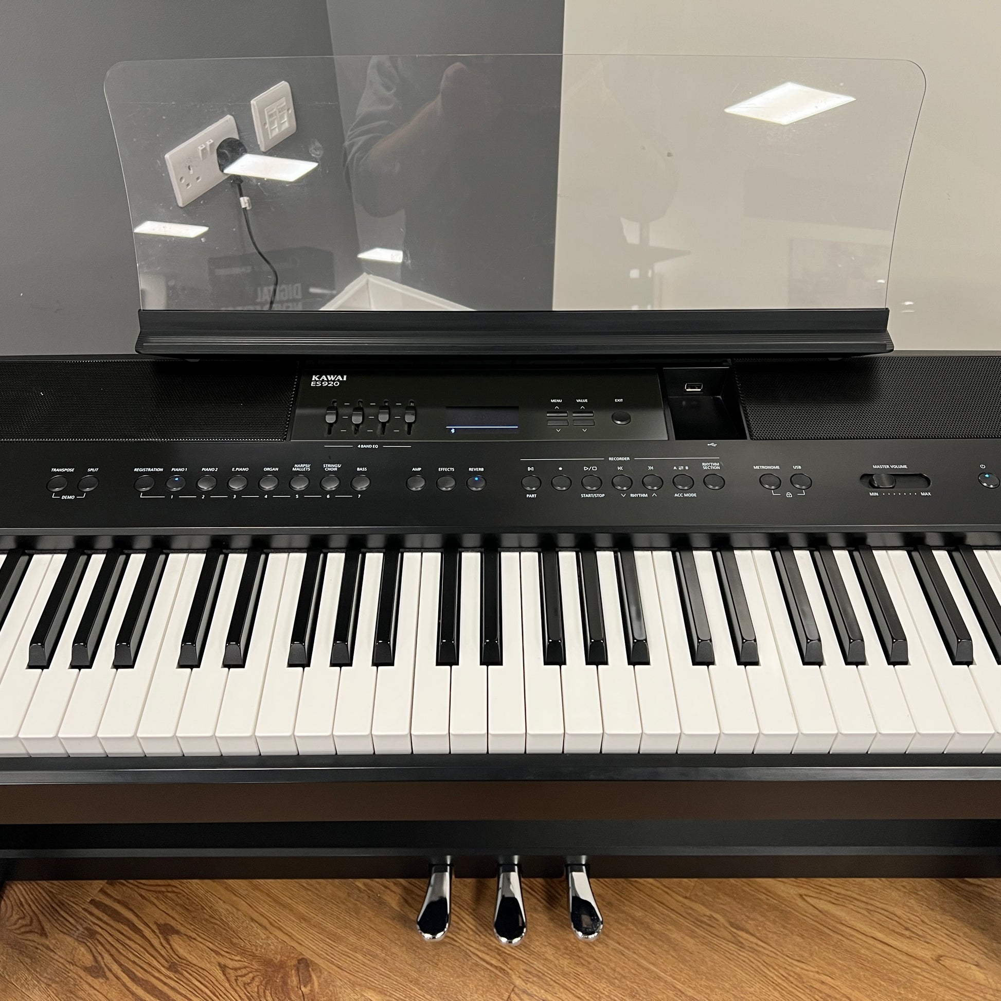 The ES920 is the latest flagship model in Kawai's lineup of portable digital pianos with built-in speakers. It is designed for pianists who need an instrument which offers the very best sound quality and keyboard feel in an instrument that is light enough to carry around to different locations. The ES920 has some features which put it in a league above other portable pianos in the same price category such as 4 Band Graphic EQ, 40watts amplification/speaker system designed in collaboration with Onkyo, and Bluetooth MIDI and Audio functionality with aptX support for wireless communication and audio playback.