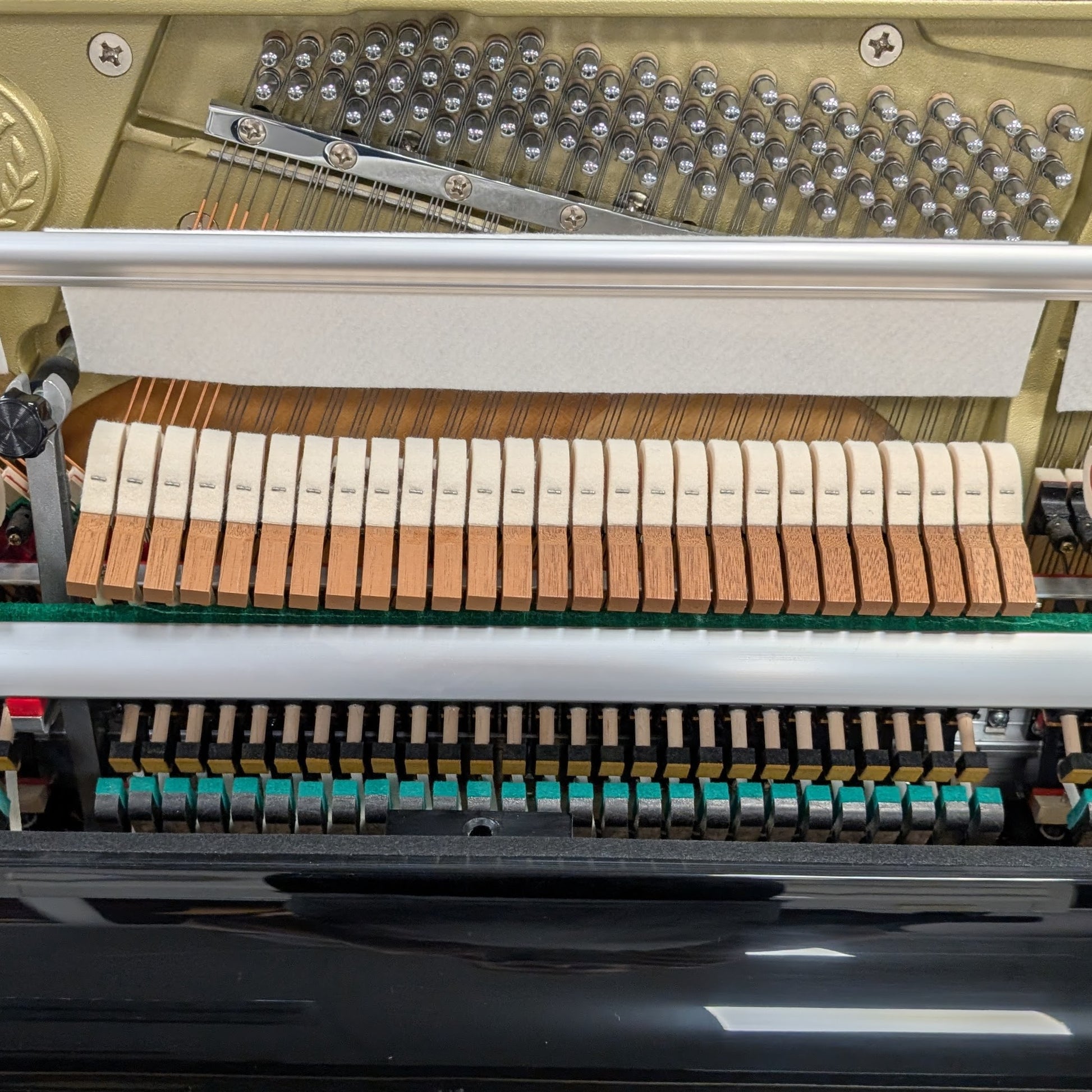 This instrument has been prepared by our in-house piano technician and has been fully serviced. The piano has been tuned, and had regulation work done to the keyboard as well as having the hammers voiced to bring out the best tone possible.