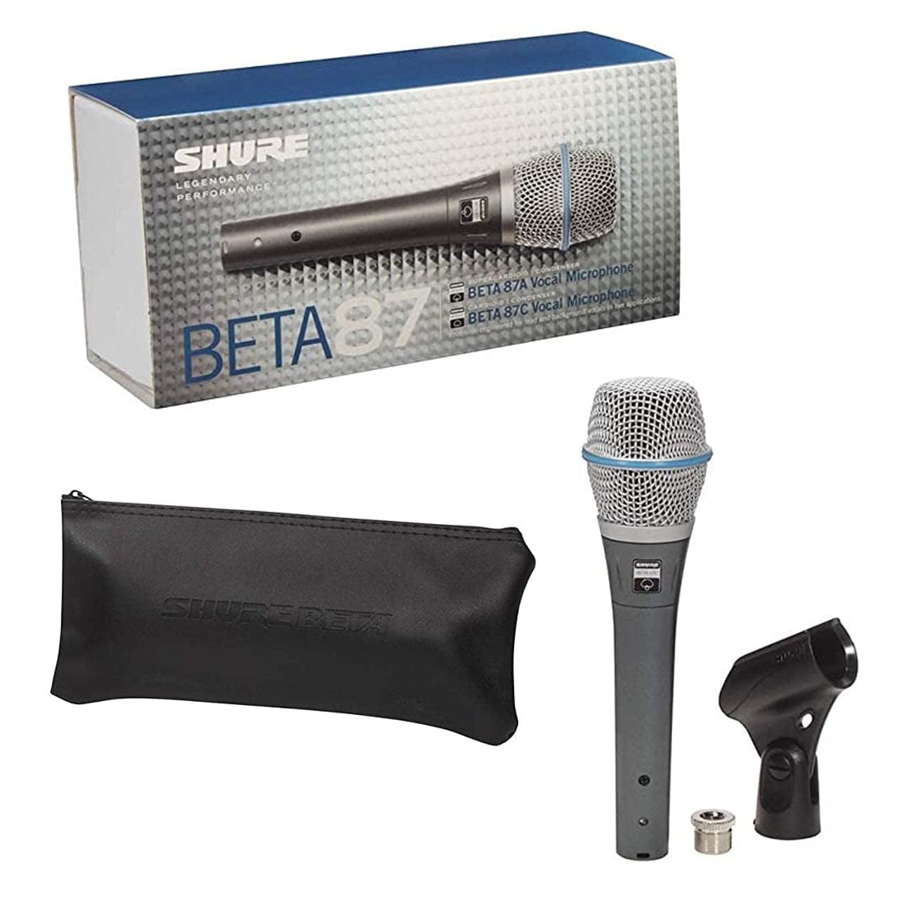 The Shure Beta 87A is a premium quality supercardioid hand-held electret condenser vocal microphone with exceptionally smooth frequency response and high sound pressure level capability. Used for professional sound reinforcement, broadcasting, and studio recording applications, the Beta 87A combines superb performance with the ruggedness needed for touring and field production. The Beta 87A features a controlled low-frequency roll-off that compensates for proximity effect and prevents the boomy sound often associated with close pick-up. The characteristic Shure presence rise brightens the upper midrange. The tight supercardioid pattern, with null points at approximately 125 degrees, provides maximum isolation from other vocalists or instruments while offering minimal off-axis coloration. The Beta 87A operates on phantom power.- Smooth frequency response with gradual presence rise